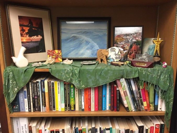 Un librero ocupa toda una pared. Hay un sillón verde con cojines morados en un rincón. Frente a su escritorio hay un cuadro de corcho lleno de notas, dibujos, memes de sus alumnos, mensajes y fotos. Todo el espacio está ocupado por recuerdos de viajes, pinturas, regalos de sus alumnos y citas literarias. Sentado en el suelo, leyendo poemas de Sylvia Plath, sentí que aquella oficina surgía de Kristin, que la orbitaba como a una estrella, y que, probablemente, al salir, desaparecería completa, como si dependiera enteramente de su presencia.